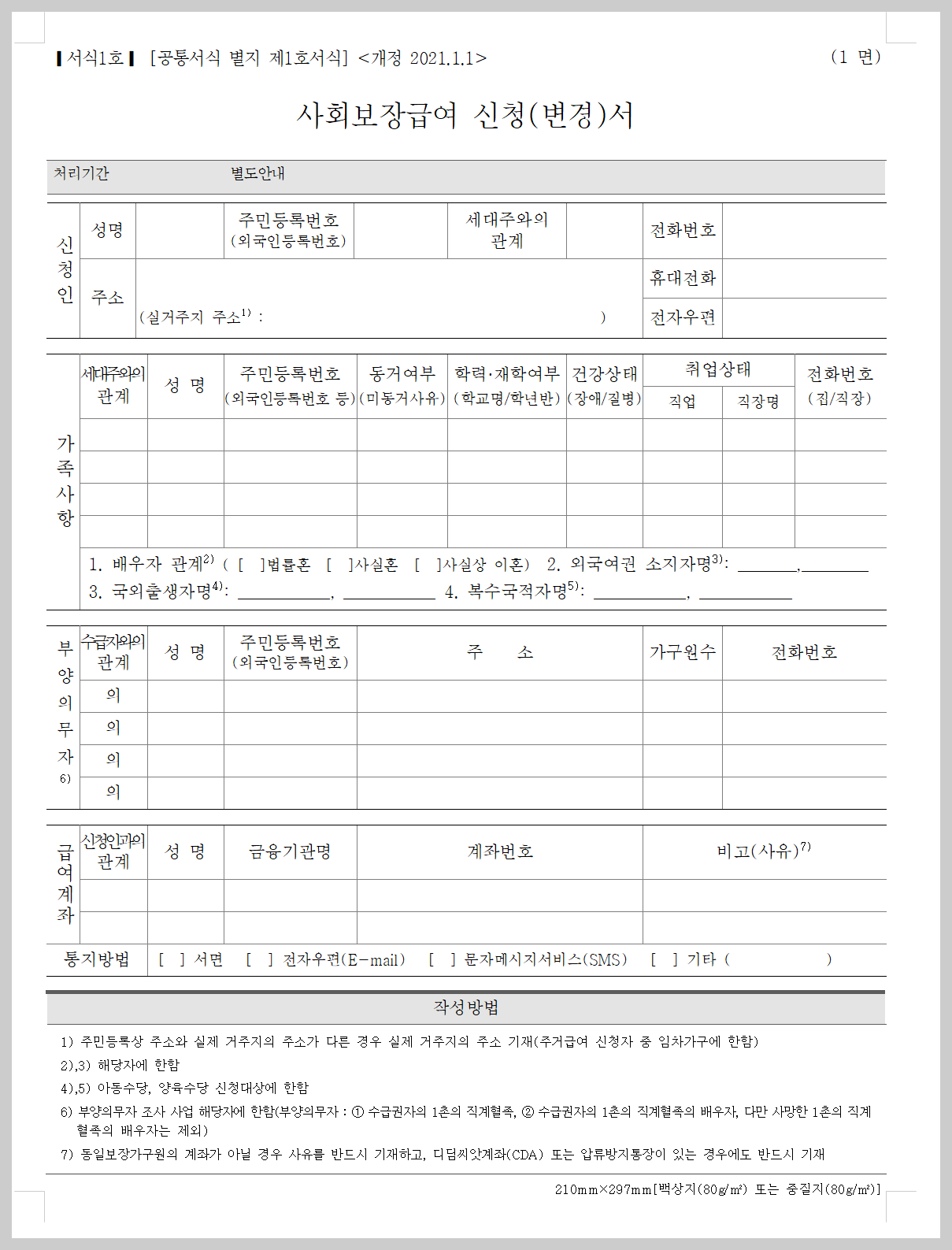- 기초연금 지급신청서(주민센터, 국민연금공단 지사에 비치)