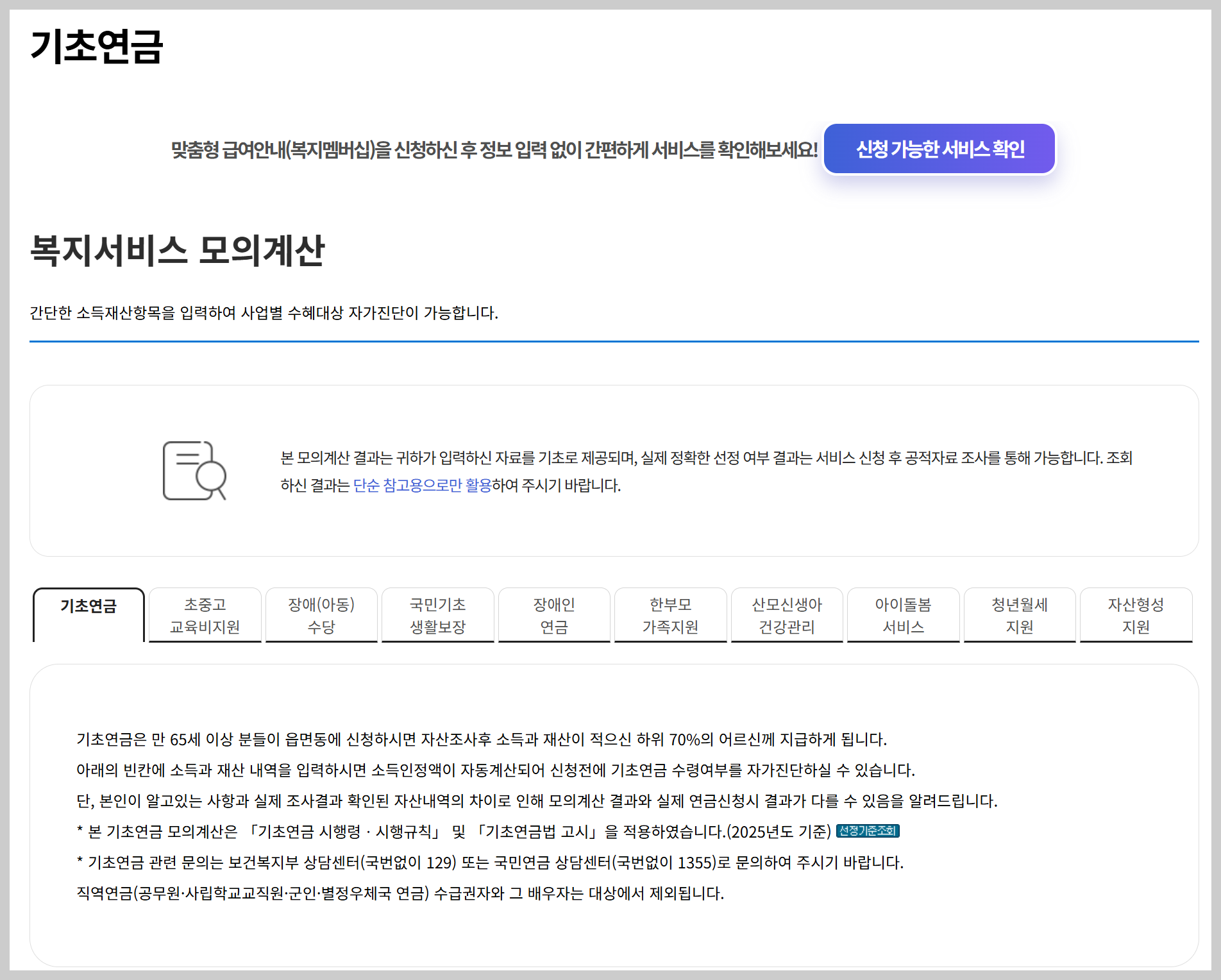 복지로 홈페이지에서 제공하는 간단한 자격 시뮬레이션을 통해 자신의 소득인정액을 미리 점검할 수 있습니다.